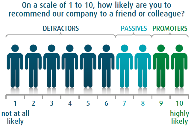 In response to an NPS question respondents give a rating between 0 (not at all likely) and 10 (extremely likely) and, depending on their response, fall into one of 3 categories to establish an NPS score: